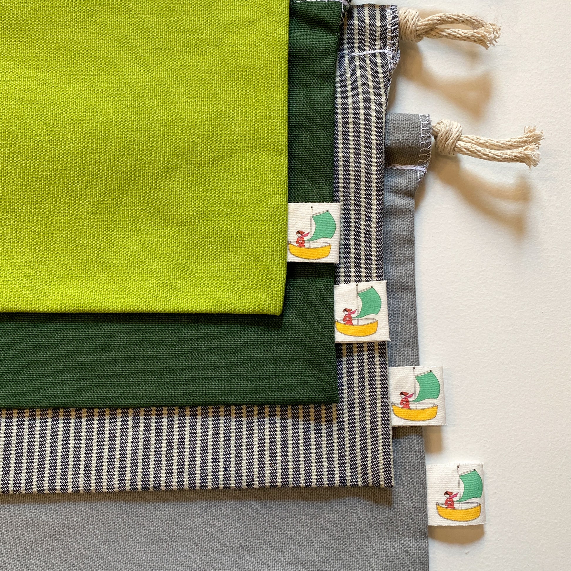 This is our favorite go-to project pouch- it's just so easy to get in and out of, and if you roll it down a turn or two it turns into a sturdy little basket-like bag. The fabric is just thick enough to stand up, and soft enough to stuff into a larger bag if you want. I never lose things in it- it's just the perfect project bag!
