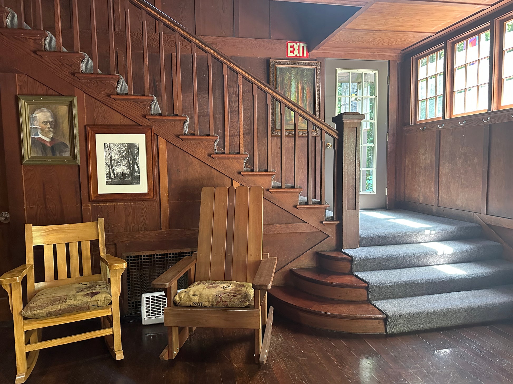 You'll be staying in one of two beautiful, large Craftsman-style homes at St. Dorothy's. The residences have original 100+ year-old craftsman details, complete with original woodwork throughout. While the homes offer a charming and rustic feel, they are clean and well-maintained. The bedrooms are all wood paneled and cozy, offering a unique and authentic experience.