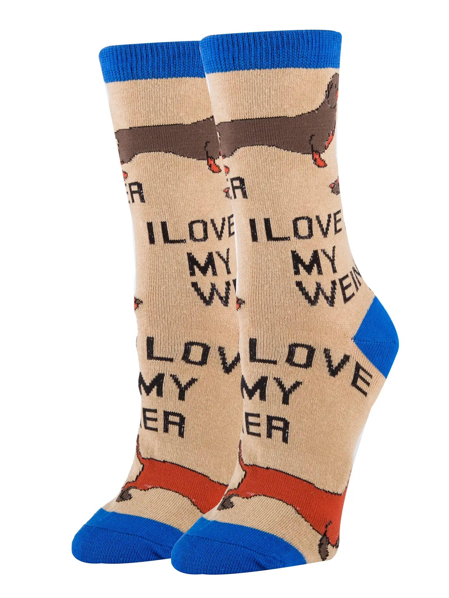 Oooh Yeah Socks - Love My Weiner | Women's Cotton Crew Funny Socks