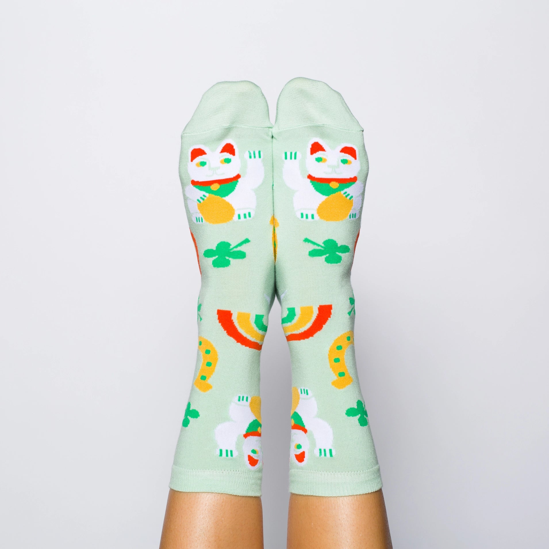 Yellow Owl Workshop - Women's - Women's - Lucky Cat & Clover Crew Socks