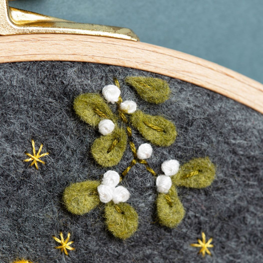 This very special hoop kit features our very favourite creatures getting ready for Christmas. Amid twinkling lights, the three little mice are putting finishing touches to their tree, hanging homemade garlands and acorns. They have been very good this year and have high hopes their stockings will be bulging by morning! The kit includes high quality wool mix felt in 6 pretty shades as well as 12 carefully chosen assorted DMC threads, an individually wrapped needle and of course a 19cm wooden hoop.