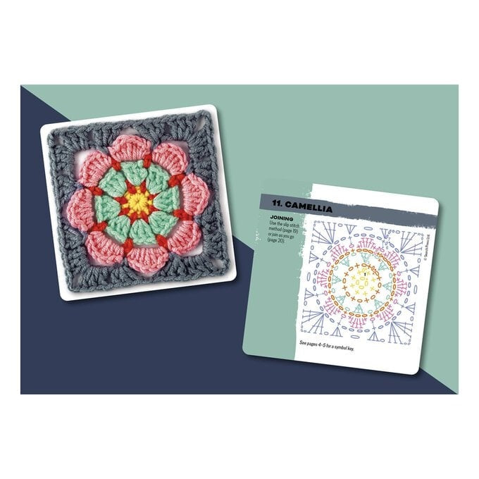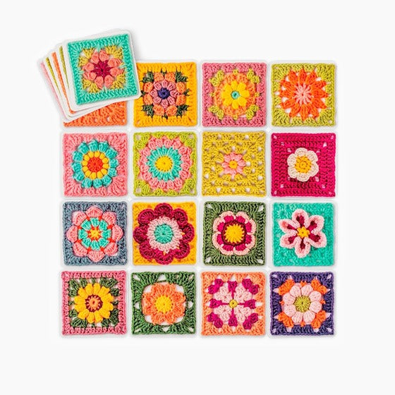 - The sturdy, stylish box contains 50 colorful cards, each with a fabulous floral granny square to make, mix and match. On the front of each 4 x 4in card is a color photograph of the finished granny square, while on the back you'll find a crochet stitch chart that shows you how to work the square, along with joining advice and any other helpful information you need. Simply lay out the cards to easily mix, match and create your own design combinations.