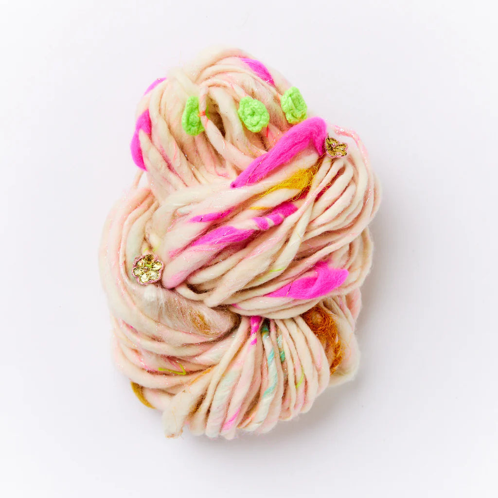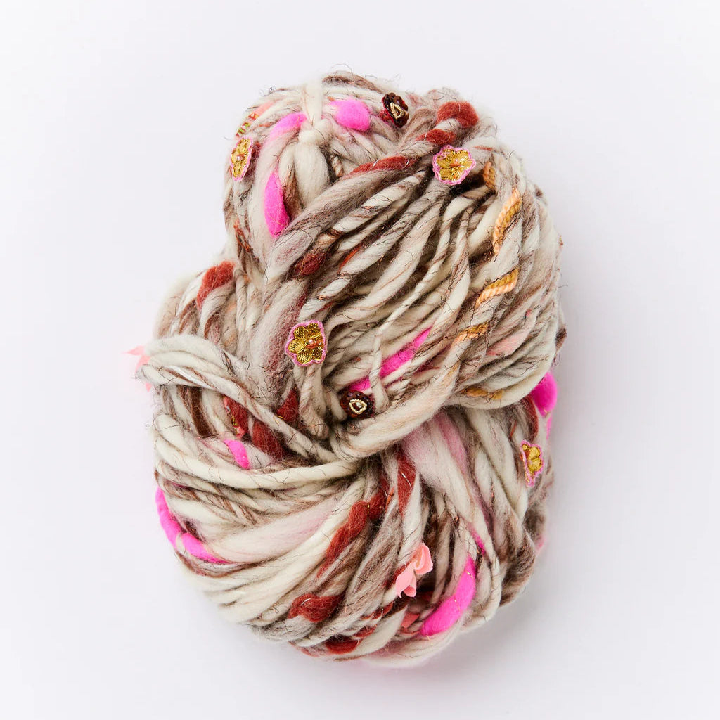 The inspiration behind Dreamland yarn comes from the incredible trim markets of Hong Kong and India. They are jam packed with gorgeous ribbons, flower appliques and novelty trims.