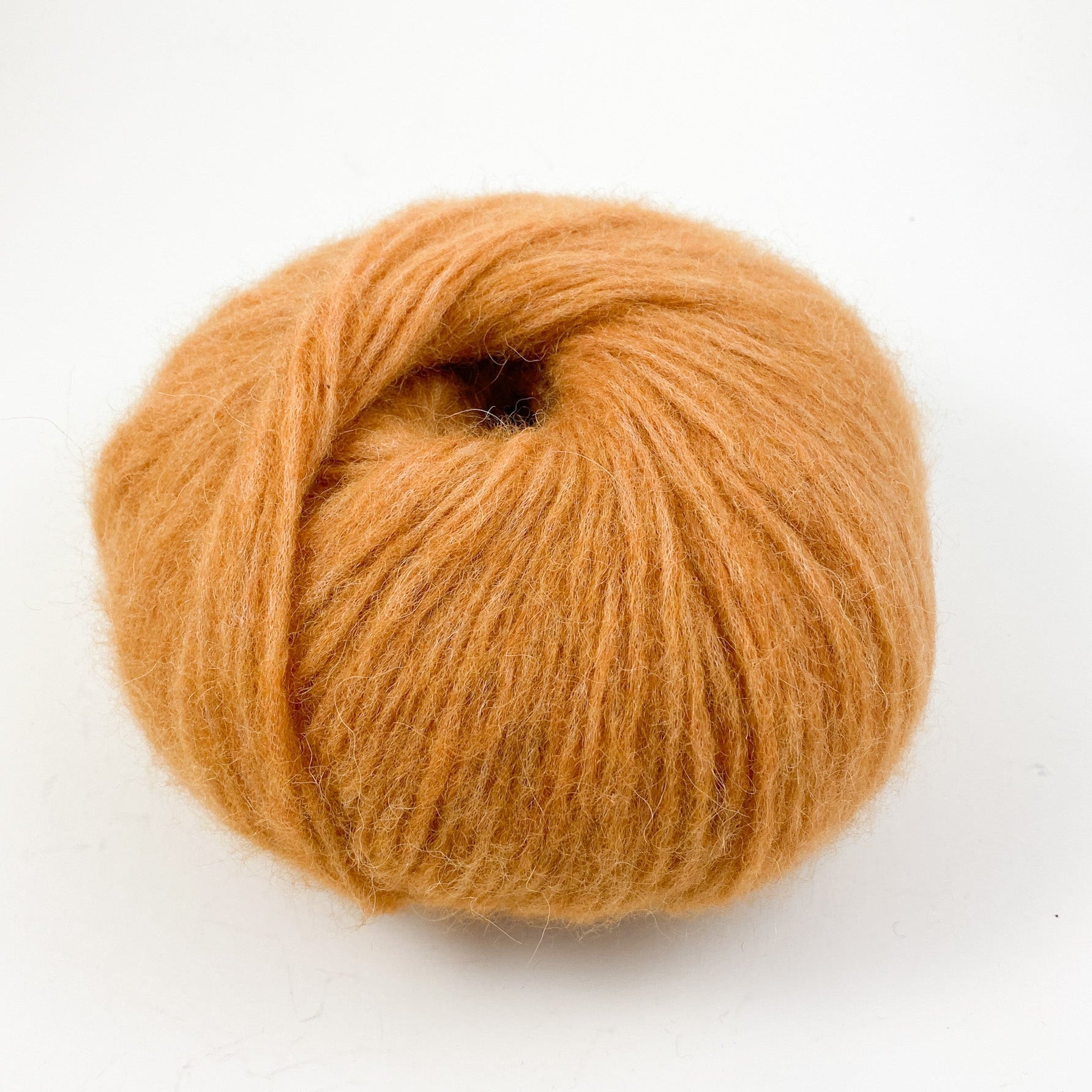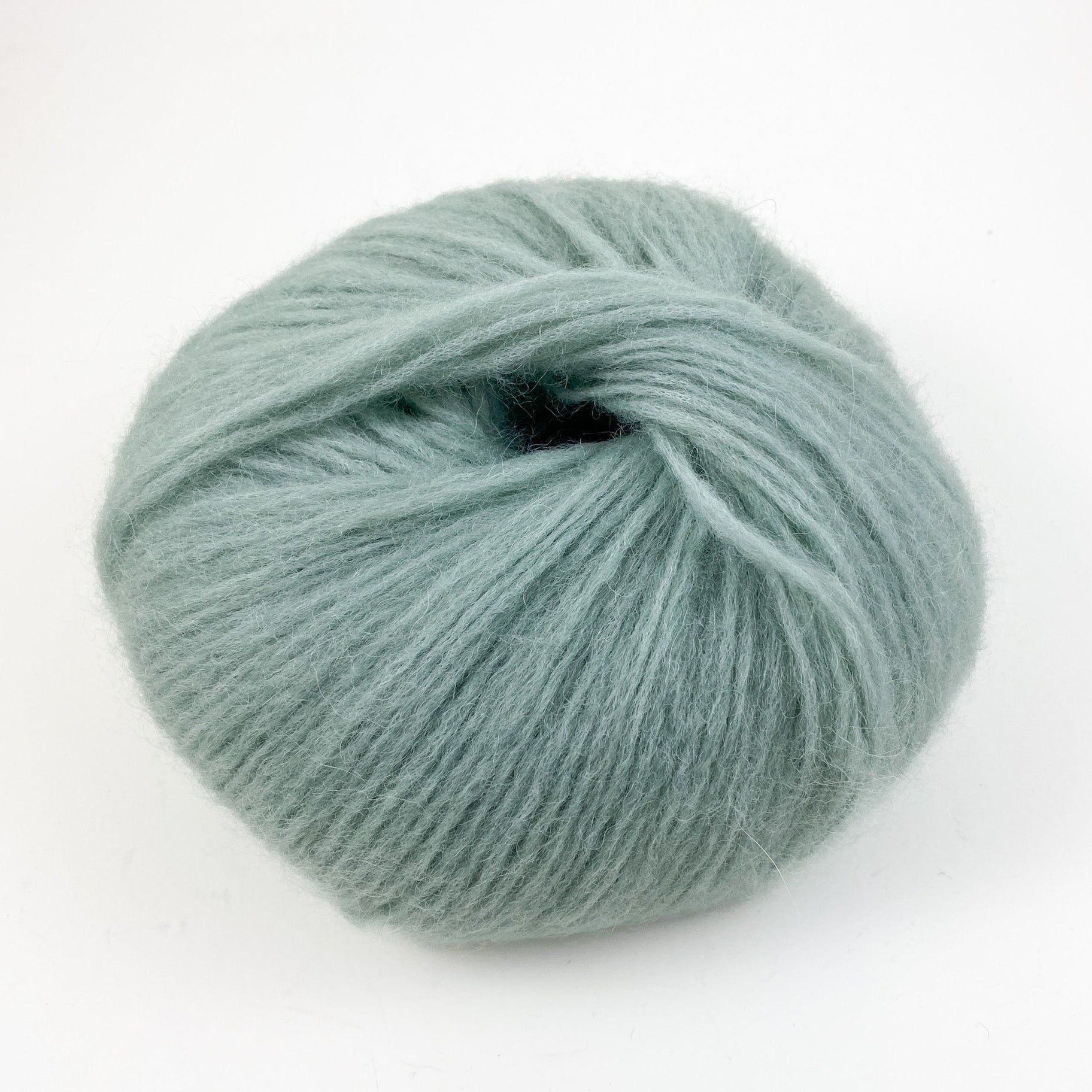 Brushed alpaca for softness, a little wool for loftiness and a small amount of nylon for strength- this yarn is soft and fuzzy and cloud like! Knits up great even up to a size 13 needle!