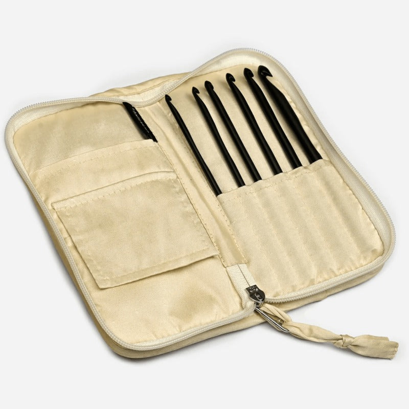 Experience luxury and functionality with the Lantern Moon Radiance Crochet Hook Set. This unique set of crochet hooks is made from lustrous ebony wood, and combines elegant design with practical use. Comes in a beautiful silk case with six of the most popular crochet hook sizes: G-L (4.0 - 8.0 mm).