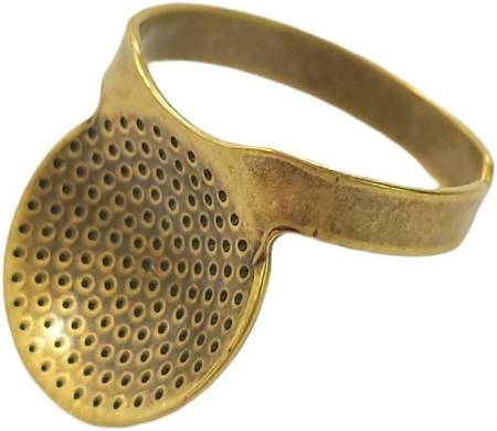 Palm thimbles are typically worn on the middle finger with the flat plate on the palm of the hand to allow you to push long needles through several layers of fabric, such as in Sashiko or Boro stitching. The Little House Palm Thimble is lightweight and has an adjustable ring that will fit most finger sizes.
