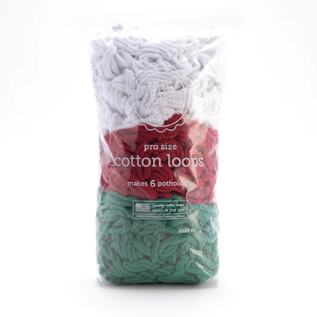 Potholders made with our loops are heat safe. Because they’re cotton, they’re actually useful – they can handle heat and won’t melt! Are they dirty with food stains? No problem! Wash them and hang them to dry. Proudly made in the USA. We take pride in making and packaging great quality products right here in the USA. This also ensures that our workers earn a living wage."