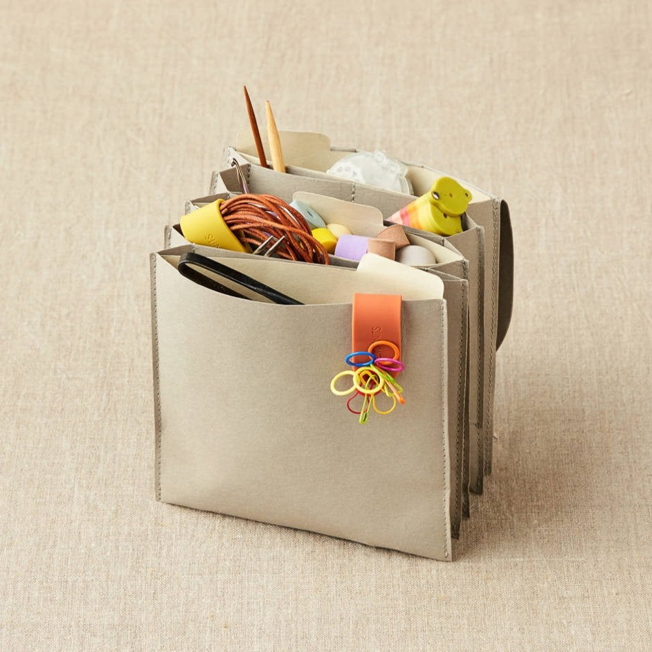The Cocoknits Project Wallet is an accordion pouch, ideal for organizing all of the tools and needles needed for any project. With 11 pockets and 3 removable tabbed folders, it holds whatever you need for your current project.