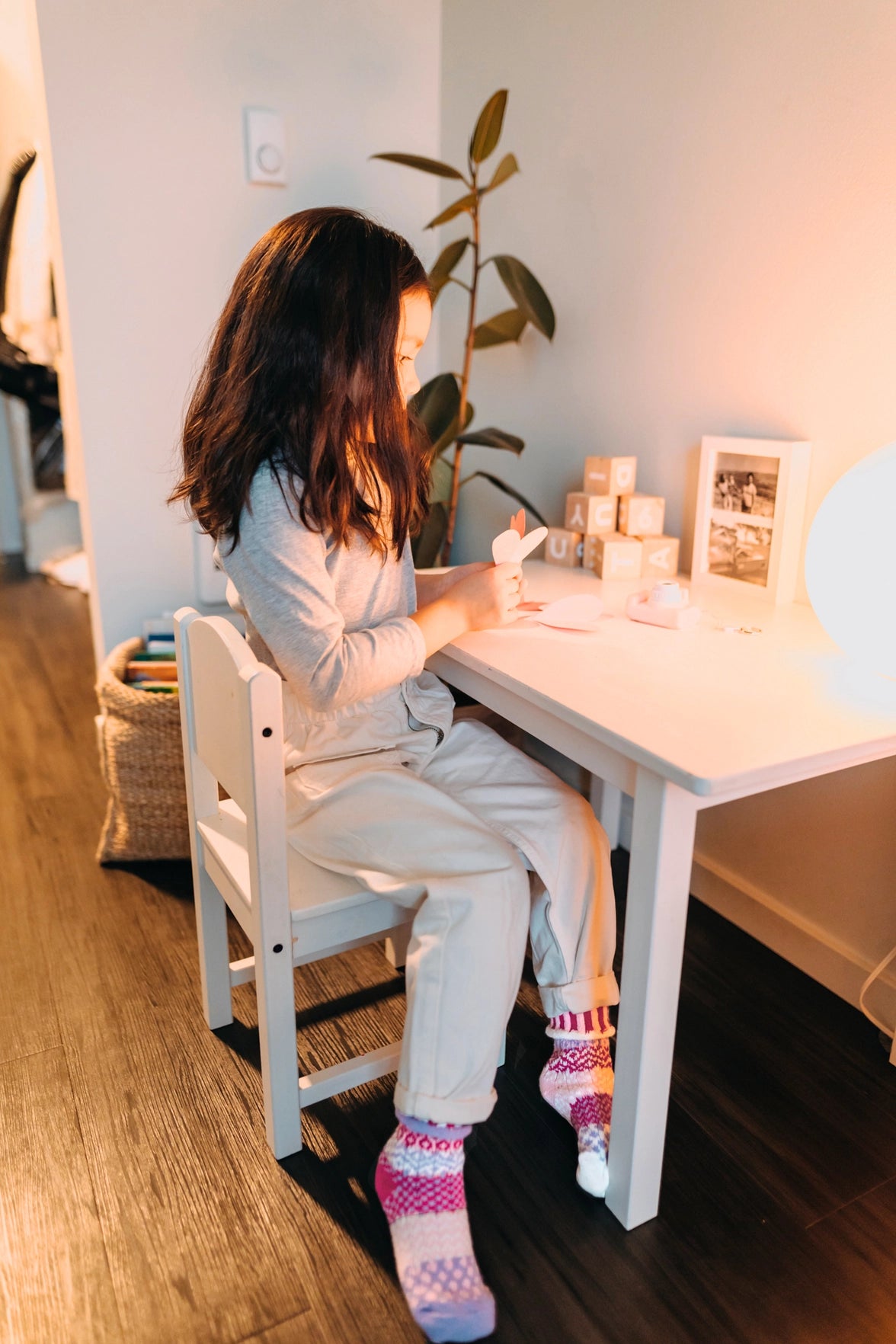 Our Kids Socks come in sets of 3: A pair + 1 spare! Colors in this sock: light pink, light purple, magenta, white.