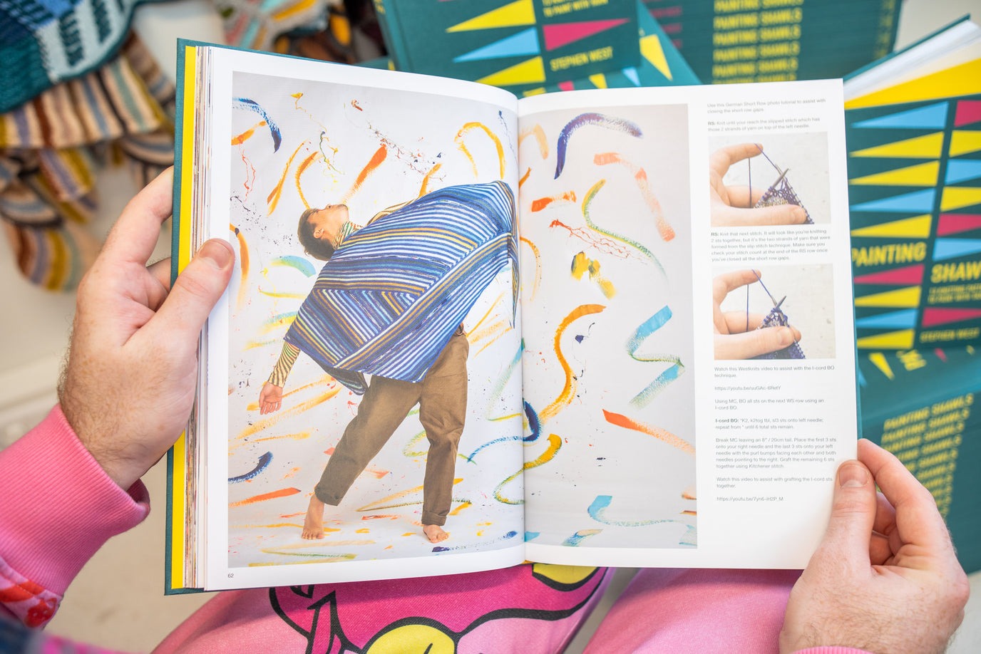 Painting Shawls contains 13 knitting patterns to paint with yarn. The shawl patterns featured in the book are a mixture of new and existing Westknits shawl patterns. They all feature a main color with contrast color pops, so you can customize the colors for your own wearable work of art.
