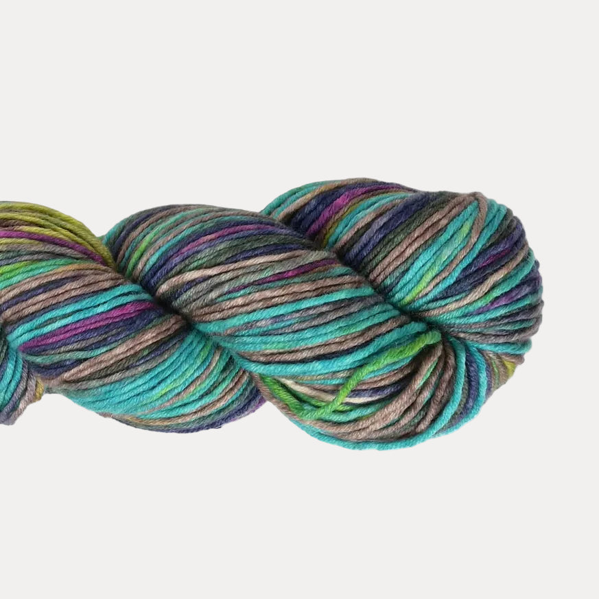 Short waves of self striping colors. In vibrant bright colors this yarn is truly unique!